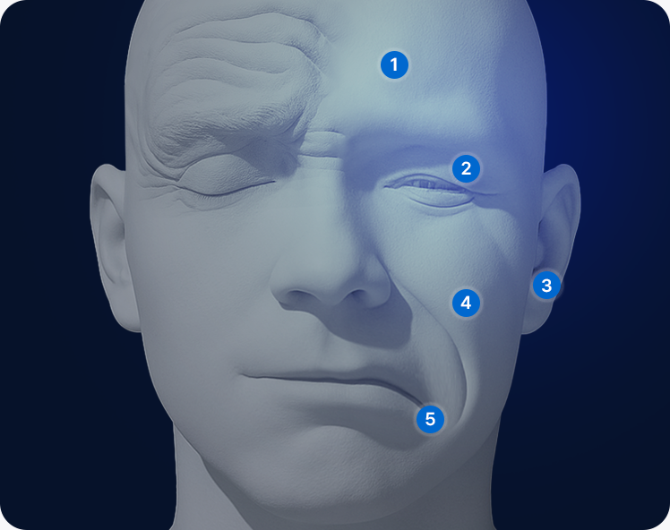 Facial muscle damage causes visible expression changes and daily discomfort.